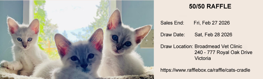 We operate in Victoria BC, and the surrounding municipalities of the Capital Regional District, including Sidney and the Saanich Peninsula. We do not have a shelter. All animals that come into our care are placed in foster homes until they are adopted. The society is a non-profit organization. The society’s operating funds are donated by individuals and corporations, or result from our fundraising efforts. READ MORE