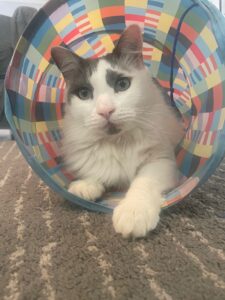 Blaze likes soaking in all the love, so prefers to be the only cat in your life. While not fond of feline company, he does enjoy the attention of the two older children in his foster home. Blaze is also known to have a good post-meal romp and is quite playful when the wand and catnip toys come out. Blaze would make an excellent companion for anyone looking for a snuggly, playful cat who enjoys human company!