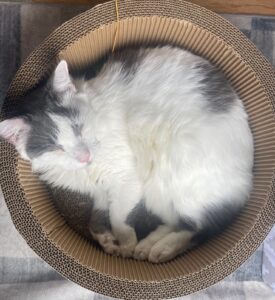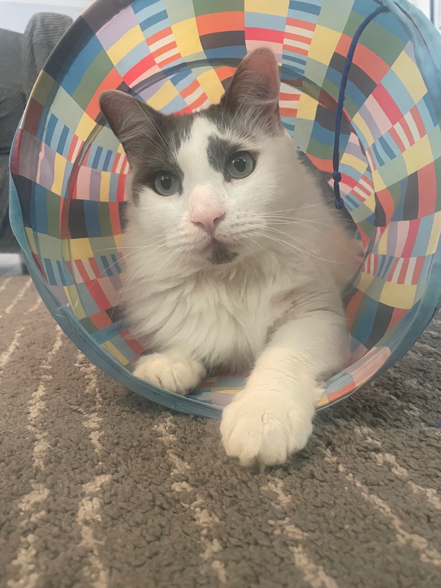 Meet Blaze, a laidback, snuggly guy who loves a good cuddle. This soft fellow loves to be around his people, but is also content to settle down for a nap while his people are busy. He’s curious and likes to be involved in family life, whether that is being in the kitchen with you while you cook, taking in a show or a book from the comfort of your lap, or watching you from the window while you’re out in the yard.