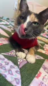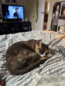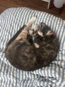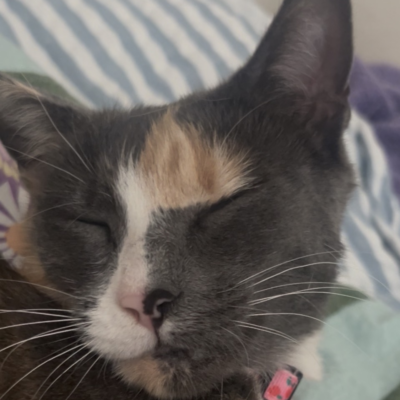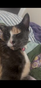 Geraldine can be most often found curled up by your feet or perched up on a windowsill. This adorable girl loves to be around people, and will request pets if she’s in the mood! If she really likes you, she’ll gently make little biscuits on your leg to let you know.