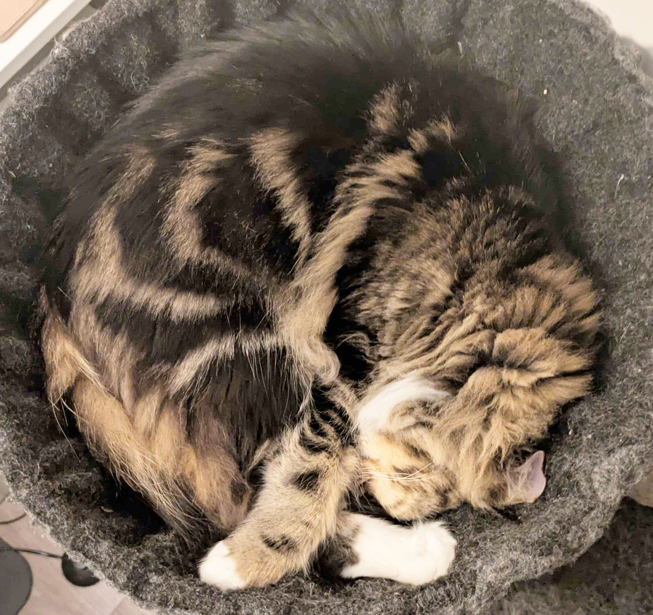 Playtime is on his terms—he especially enjoys batting at toys from the comfort of his cat hammock and has a soft spot for treat time. Bring out a licky treat, and you’ll see his eager, playful side right away!