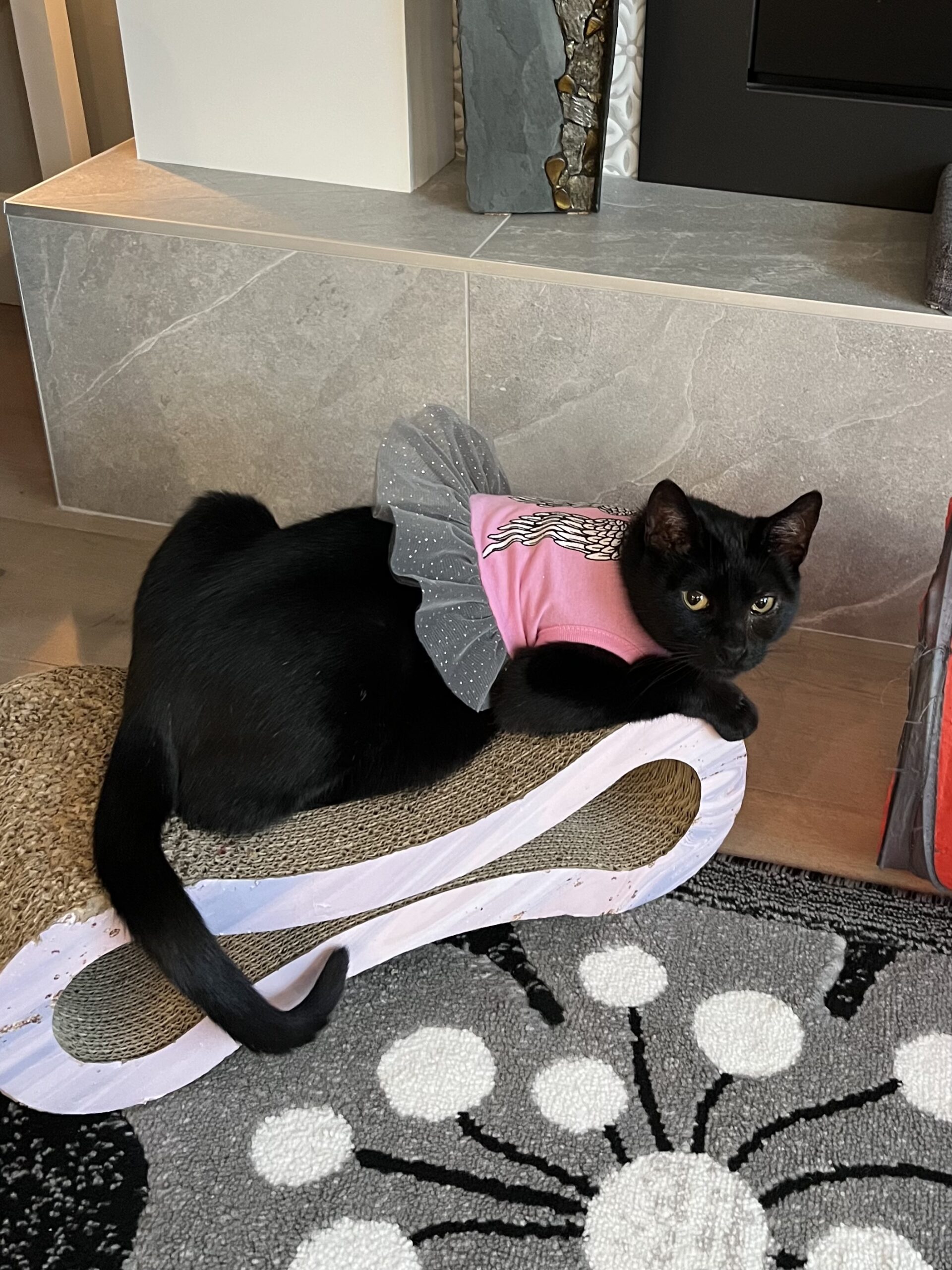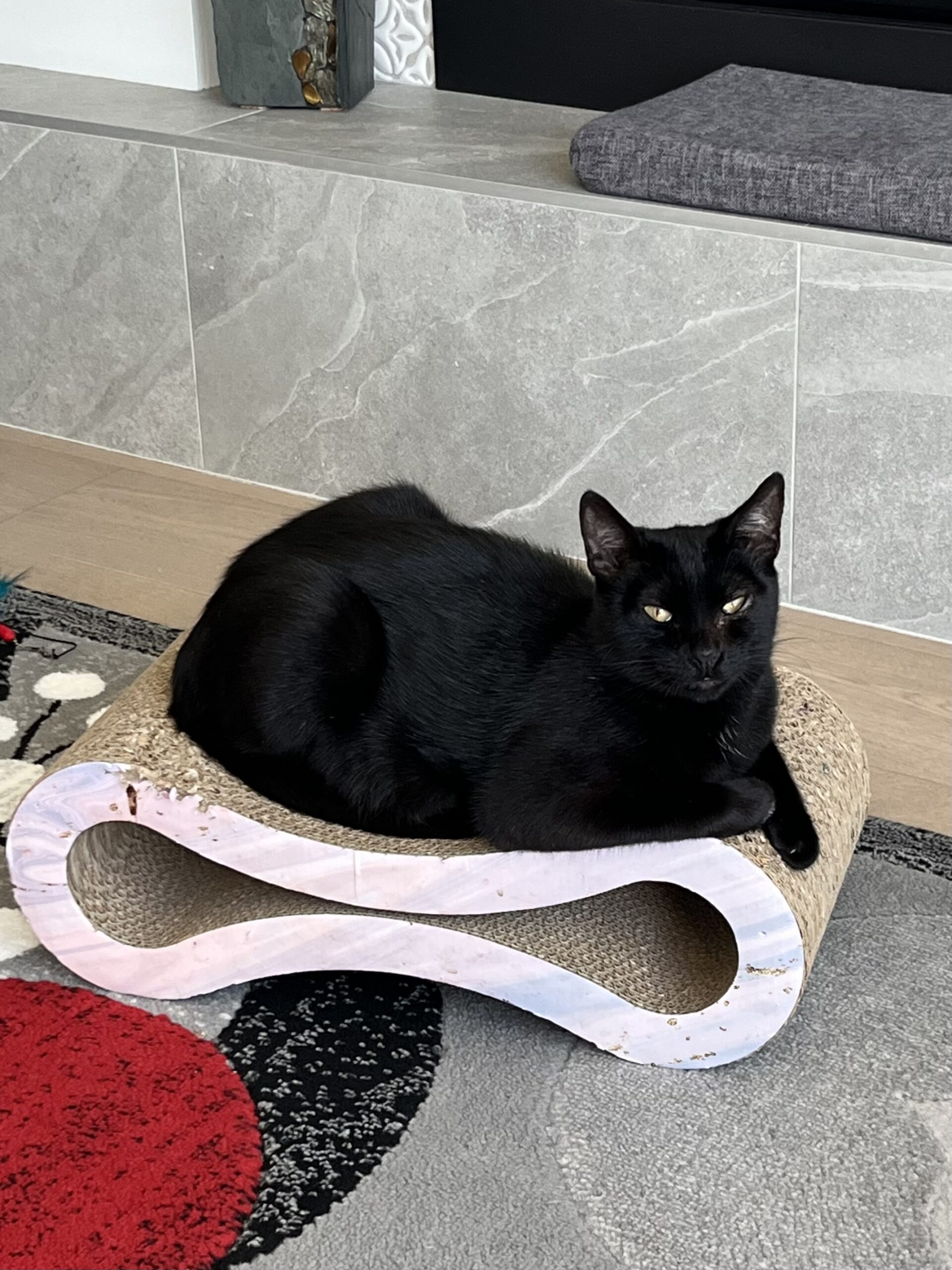 Lucy enjoys playtime and is wonderfully independent, entertaining herself with ease, though she’s always happy to have a human join in. She is calm, sweet, and deeply loving once she feels safe.