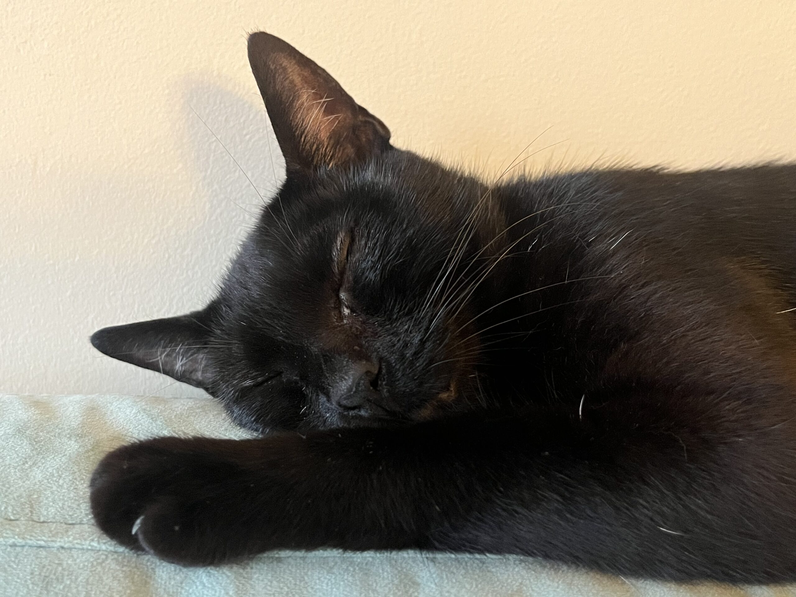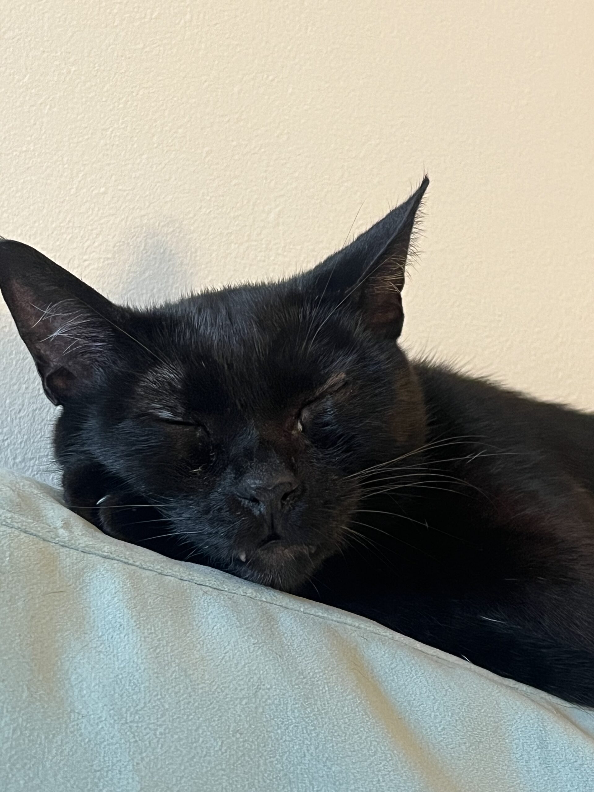 Lucy came to us as a devoted mama to four precious kittens (all of whom have since found loving homes). She had a challenging start and required some extra medical care early on, but with patience, treatment, and lots of love, Lucy has blossomed into a gentle, affectionate, and treat-loving companion.