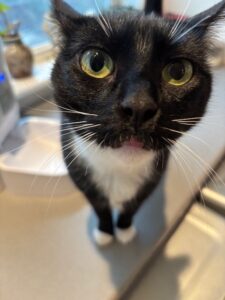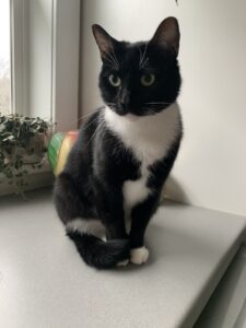 Marley is the kind of kitty who genuinely wants to be part of your day. She’s curious, super smart, and loves hanging out near people, even if she’s not quite a full-on lap cat yet. She’s more of a “I’ll be right beside you” girl, and it feels easy to imagine that once she’s settled into her forever home and really bonds with her people, the cuddles will come. She isn’t fearful at all, she just likes her personal space, and her fosters have been really impressed by how confident and calm she is.