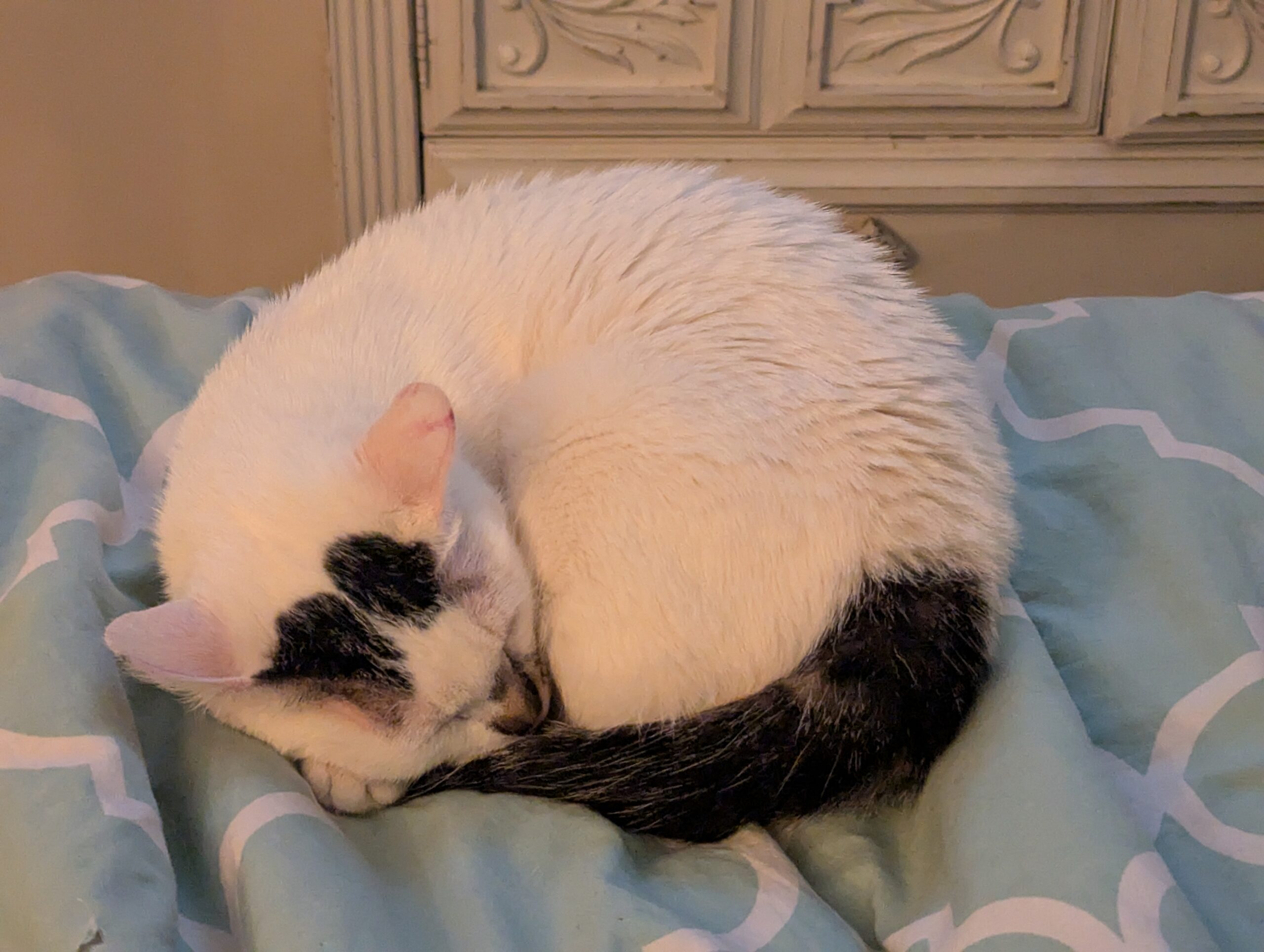 * The Cuddle Professional: While she’s not a lap-sitter, she’s a world-class cuddle buddy. She’s an independent sleeper who prefers to guard the foot of your bed.