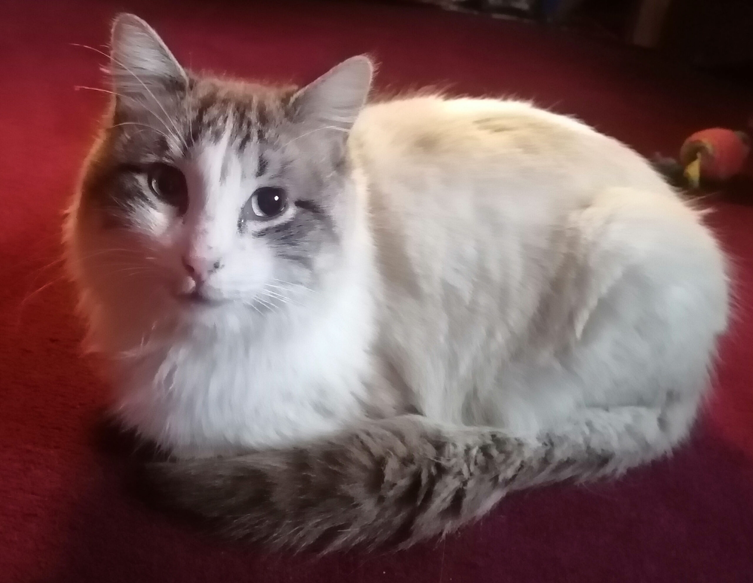 This affectionate boy does like to weave around your legs and stay close as you move about, so he may be best suited to a calm, slower-paced home where he can safely be your little shadow. His experience with children and dogs is unknown, however he has gotten along well with other cats in the past.