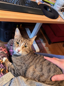 This kind kitty takes a bit to warm up, but she is definitely worth the wait! Once she’s comfortable with you, be prepared for long lap sits and cuddle sessions.