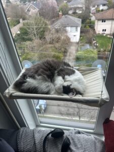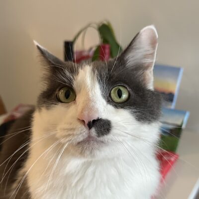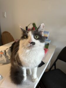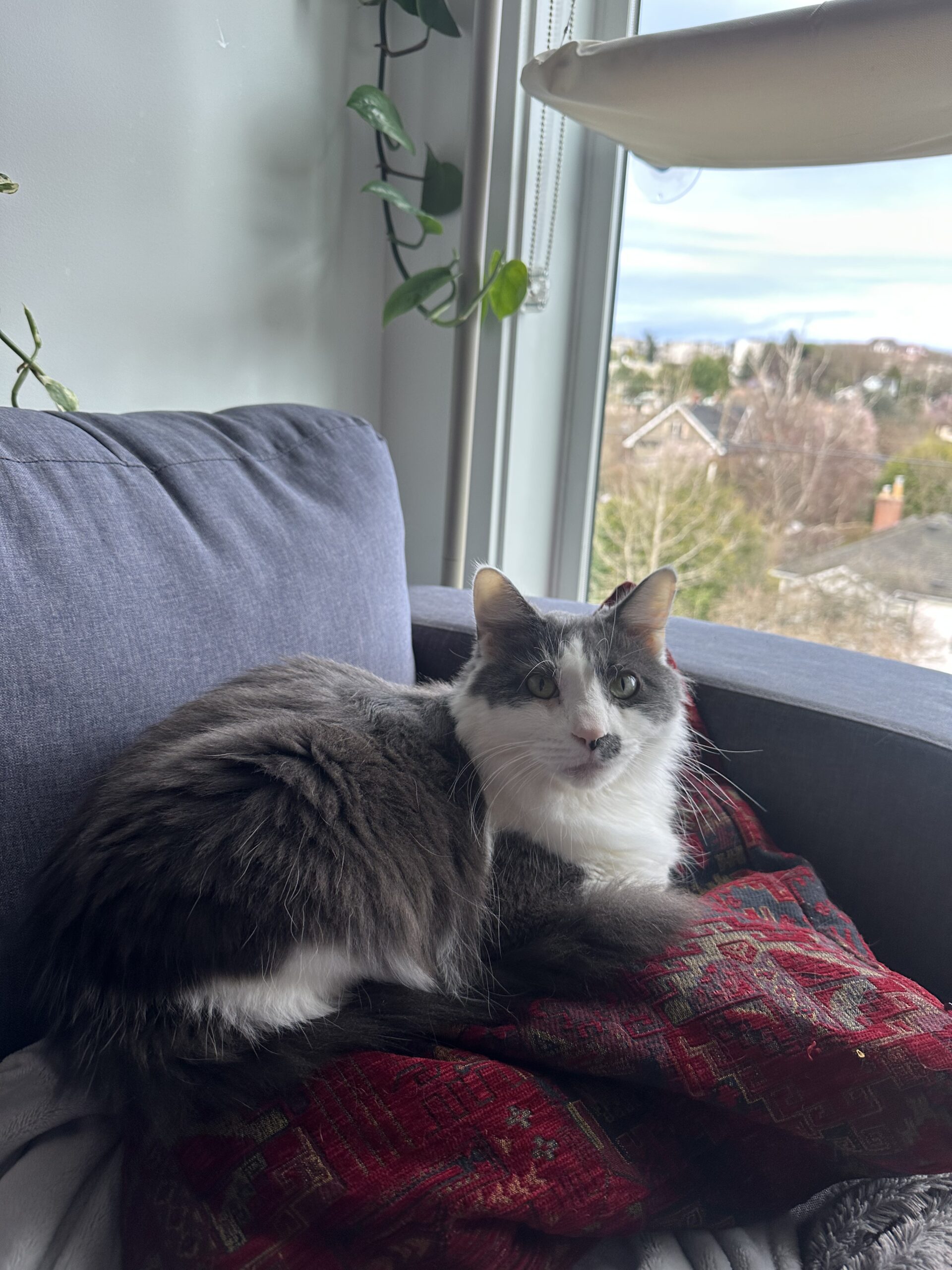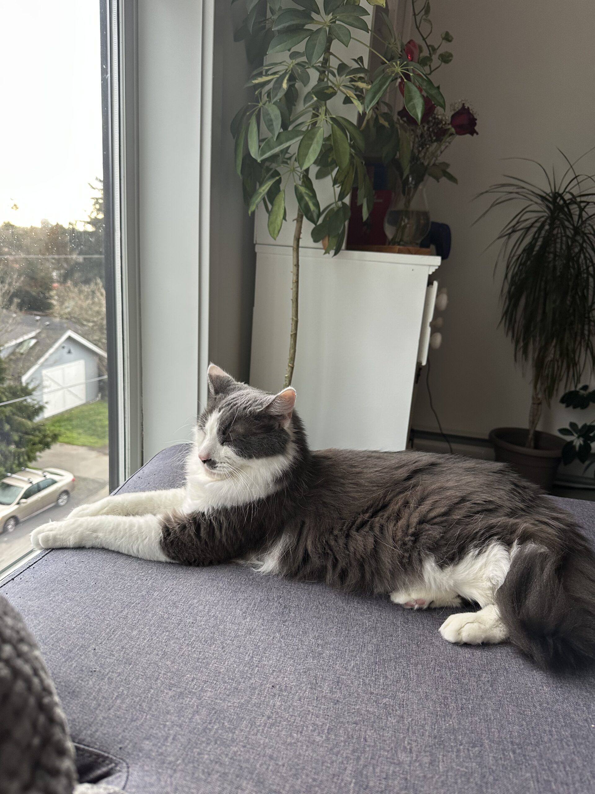 Philo loves to be around his humans, and will happily follow you around the house. He is very content to just be in your presence, whether that’s sitting beside you while you read, watch tv, or go pee. He’s not much of a lap cat, but will always keep you company…from a few feet away … but close enough for the chin scratches he loves so much.