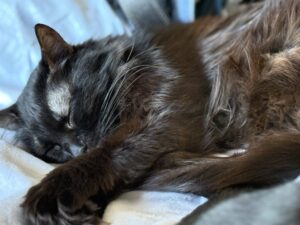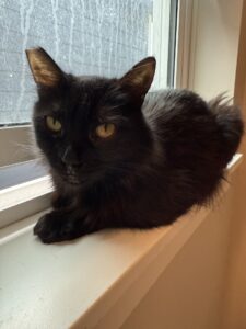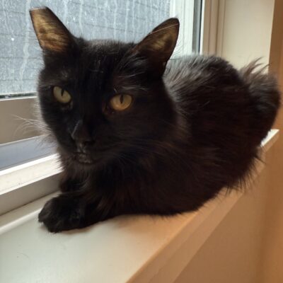 Poppy is a stunning black beauty with a heart as warm as her silky fur. She’s gentle, graceful, and full of affection, always leaning into every pet and purring the moment your hand touches her. She has just finished being a devoted mama and is ready for her forever home!