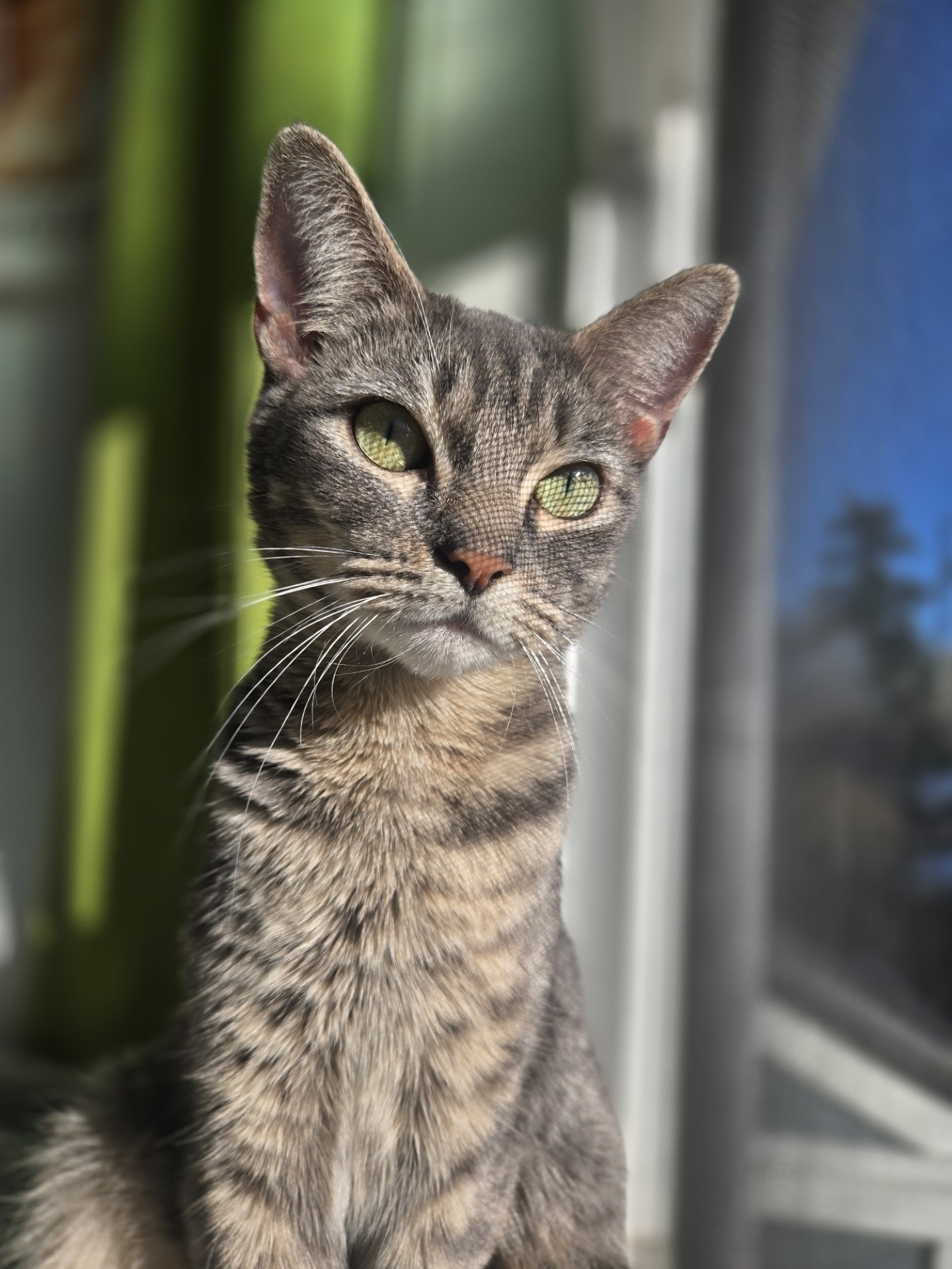 She’s an indoor only sweetheart who’s gentle with kids and delightfully low maintenance. Princess doesn’t demand attention, she quietly receives it through calm companionship, soft purrs, and a long thoughtful stare that says either “you are my whole world” or “I’m quietly planning a takeover.” Hard to tell. Worth the risk.
