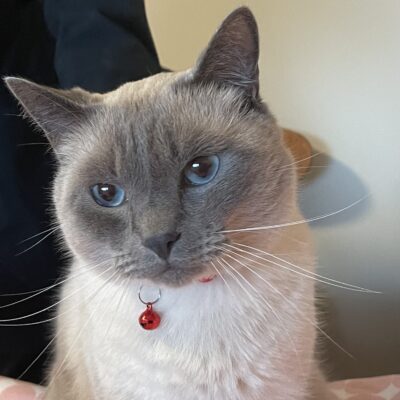 Kokomo is affectionately referred to as ‘Mo’. He is a beautiful lilac point Siamese with legs for days and a tail to match. Mo is a naturally awkward fella which is a big part of his charm. His favourite activities are eating snacks (especially vegetables), snoozing in a quiet hideaway or in a cozy bed with his people, lying under big leaves in the back garden and playing ‘soccer’ with anything that resembles a small stick. Mo does know a few tricks and can fetch (when he’s in the mood). He is uncharacteristically quiet for a Siamese so if you are looking for someone to have a conversation with, he isn’t your guy.