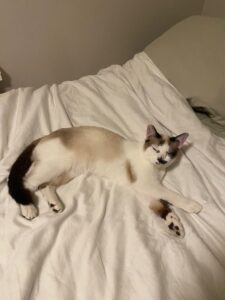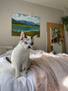 Shelley is a very easy going, energetic, and social cat who would do great in a home with other animals or kids! Her favourite past times are following our cat around the house, napping in a sun patch, watching out the window, munching at cardboard, and playing with any and every toy she finds.