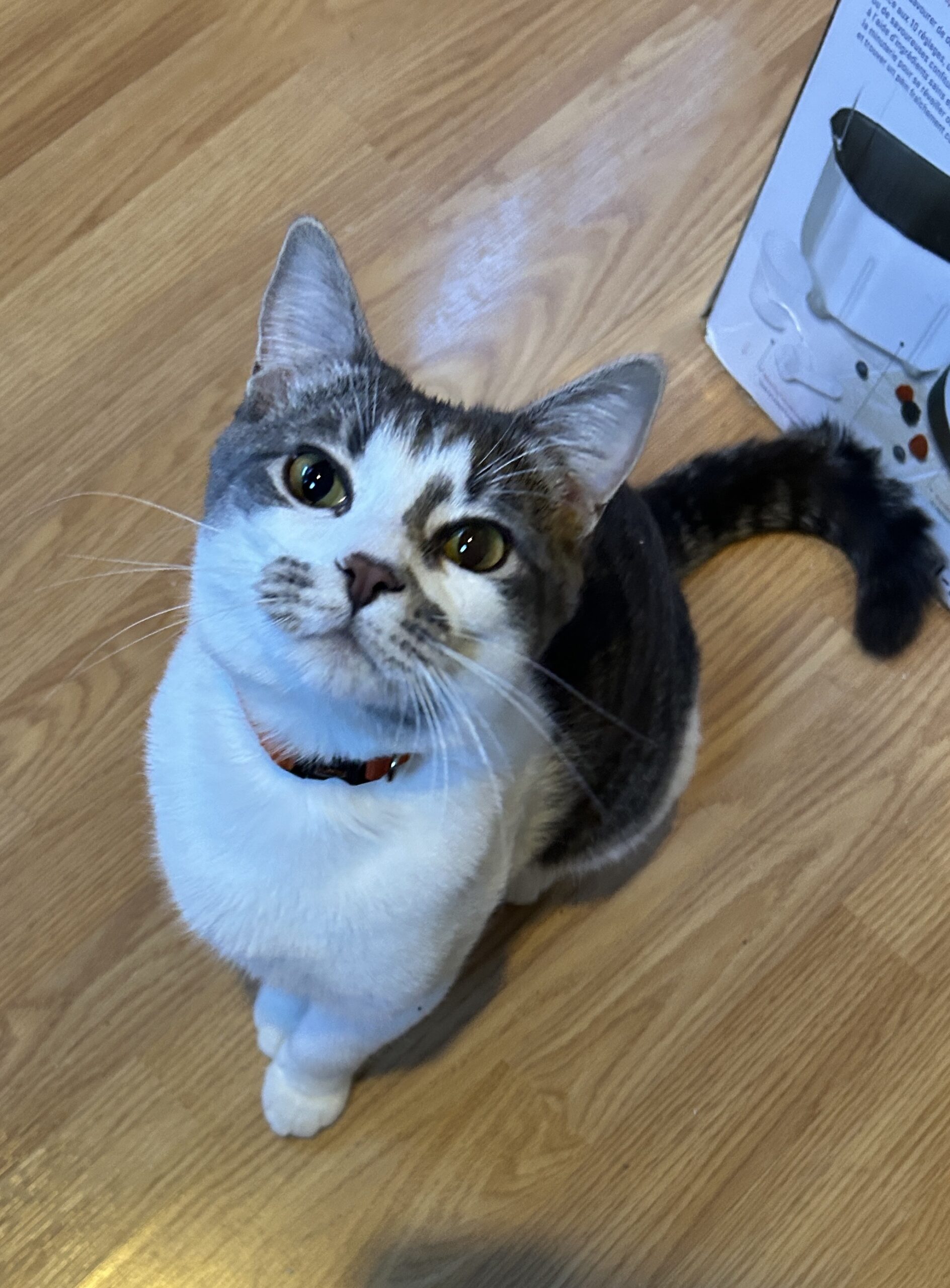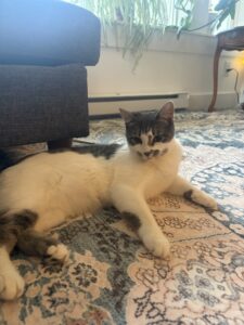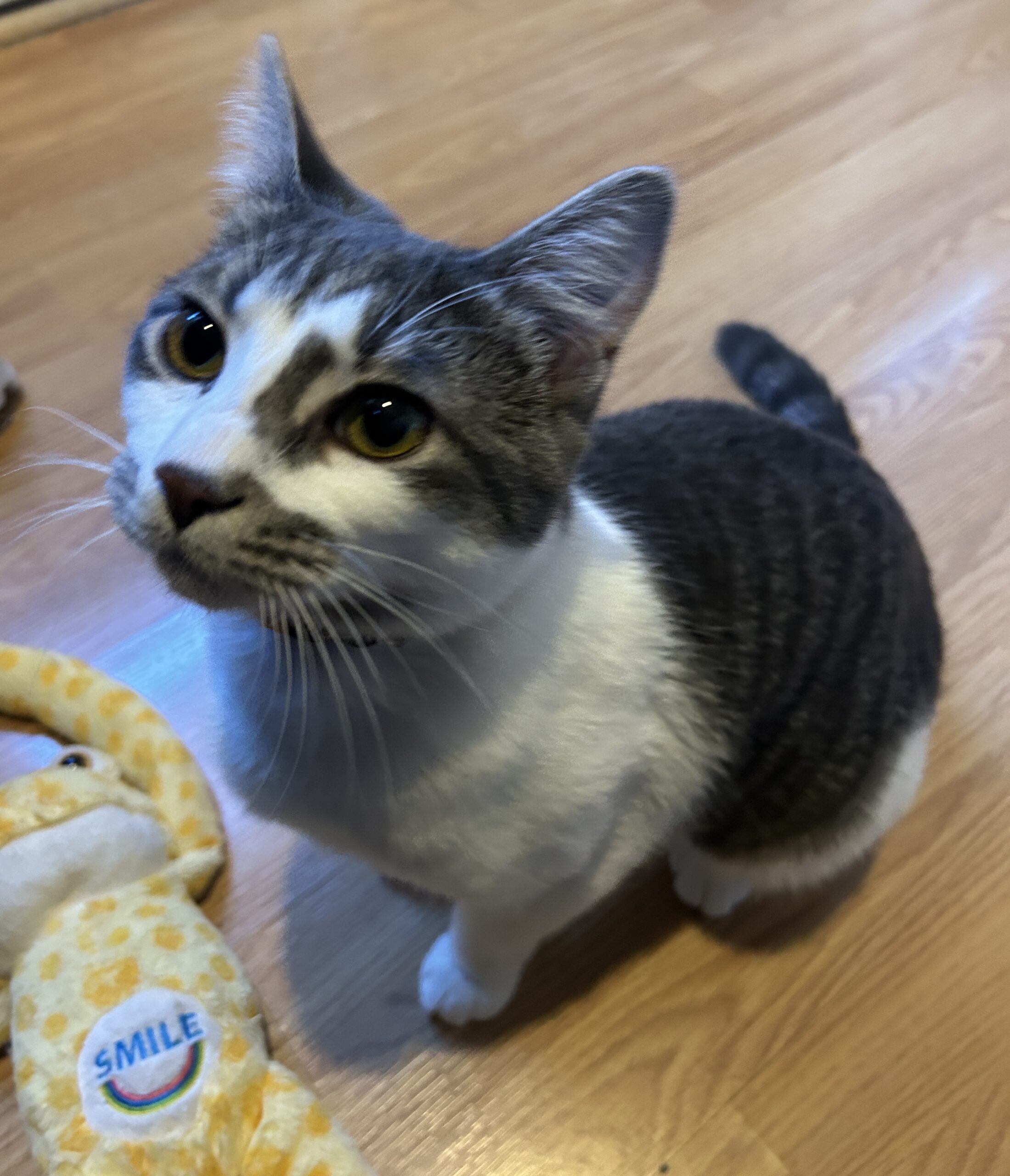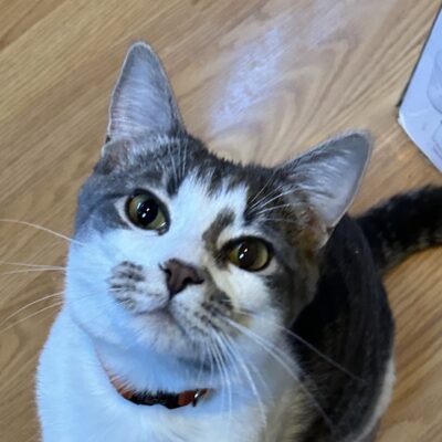 If there is a closed door in your house, Sprout is already on the case! This lovely 12-month-old grey and white girl is the perfect blend of a curious explorer and a gentle companion. Whether she’s investigating a new nook or cranny or entertaining you with her silly antics, Sprout is sure to bring endless joy to your home.