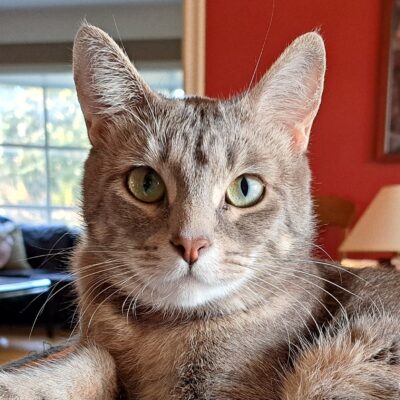 Say Hello to Strings! She is a sweet, affectionate and chatty two year old champagne and grey tabby. Strings was owner surrendered due to changing circumstances, so she comes with everything she needs to move in and feel at home. (Cat-tree, scratching post, litter box, carrier, toys and even food dishes.)