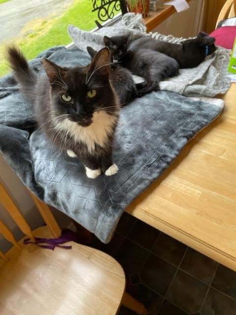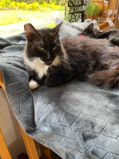 Swimmer doesn’t ask for love he demands it. He loves to sit in your lap (or on your chest) where he can be close and warm and if he feels like you aren’t petting him enough he will gently put his head under your hand and use it to pet himself lol. He knows his name and doesn’t hesitate to come when you call him.