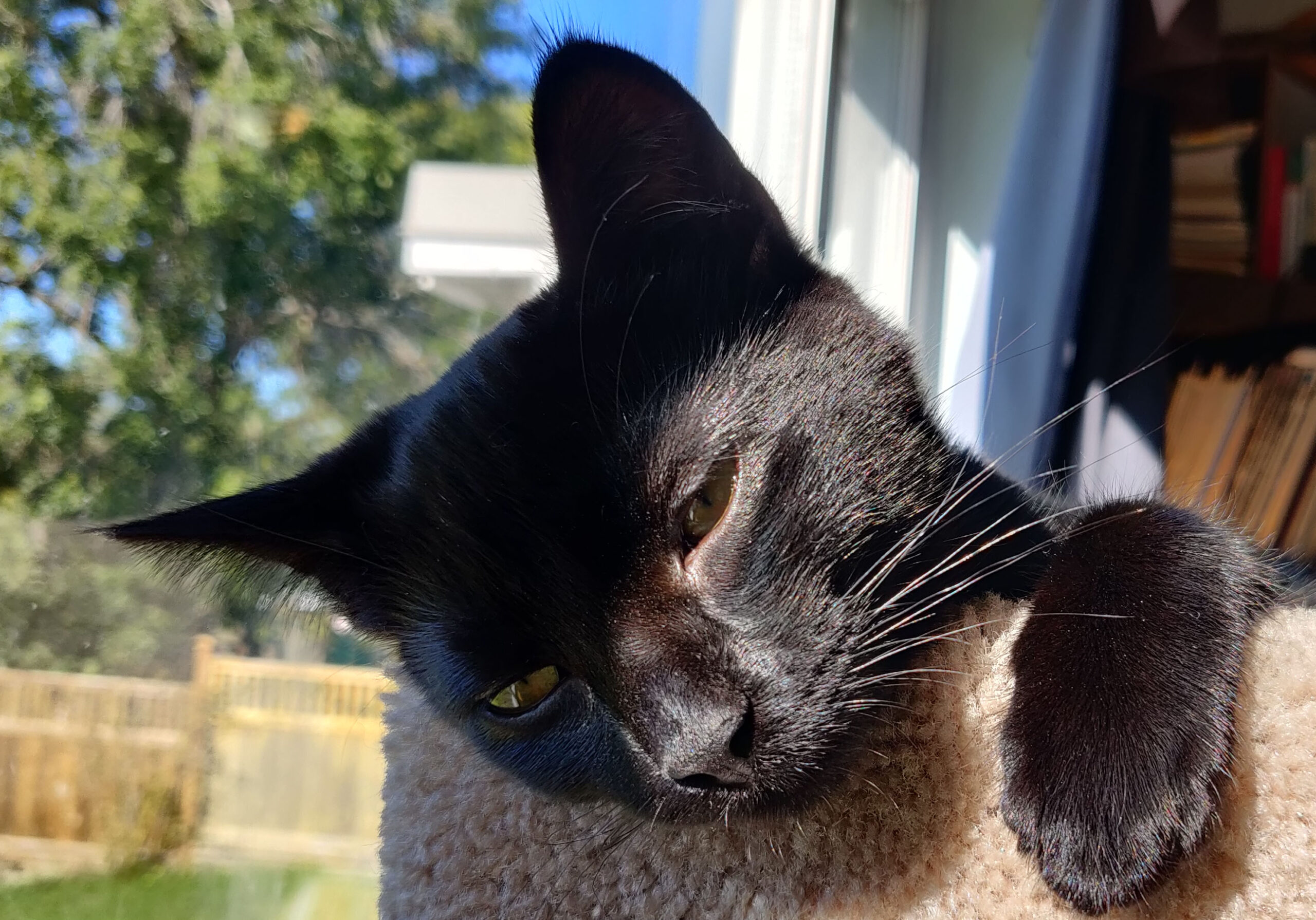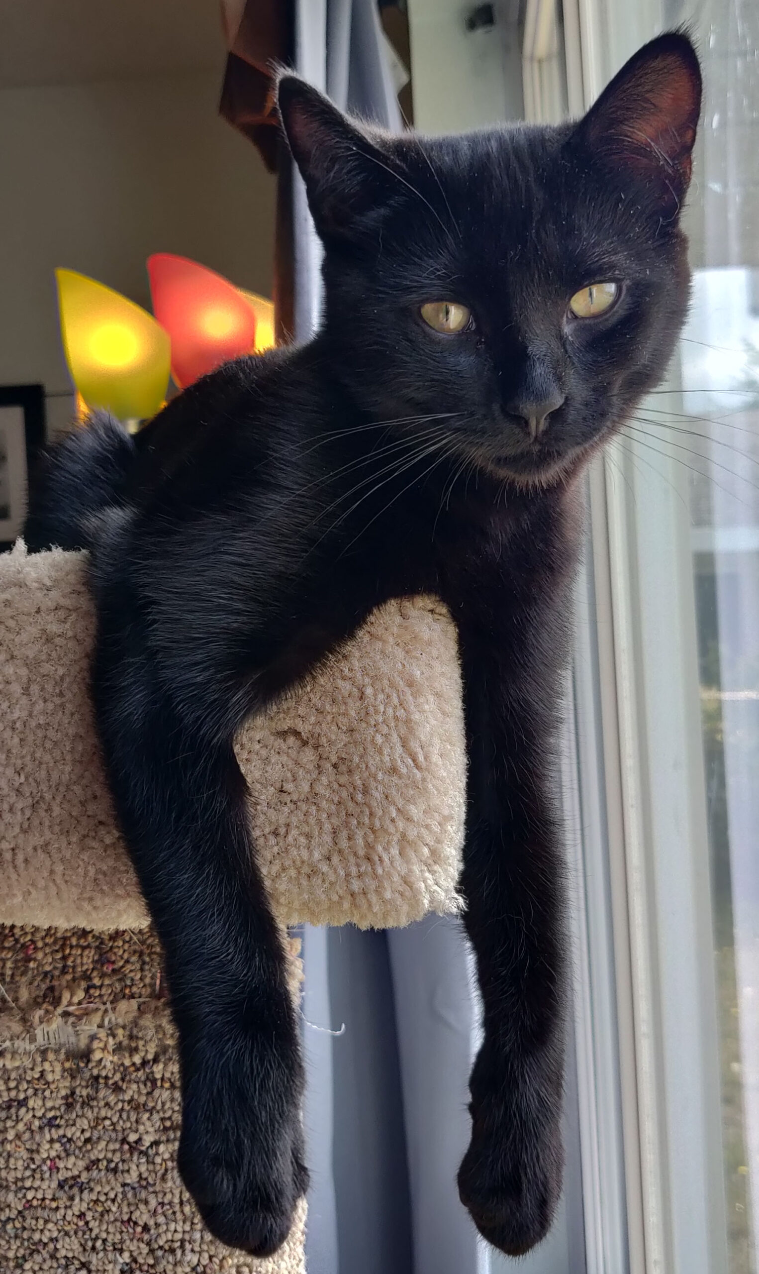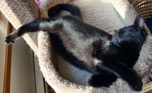 Annie is a little bit more shy than her brother, but quickly gets comfortable and loves to snuggle with humans, her brother Barry, and her foster parents’ cat. She also enjoys chasing her brother’s tail and wrestling. She loves treats and also inspecting the food humans are eating. She loves to climb, jump, and play with toys. She has two very tiny white hairs on her forehead, other than that and her smaller eyes, she looks almost identical to her brother. She also loves video games (trying to catch the characters on screen) and relaxing in sunbeams. “Spay” scheduled for Nov 13th. (CCAR ID: L25-135)