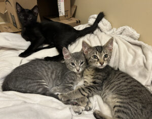 When playtime is over, Bat is all about curling up for cuddles, purring happily the moment she’s in your arms. She gets along wonderfully with the other foster kittens in the house and is often found wrestling, napping, or zooming around with them.