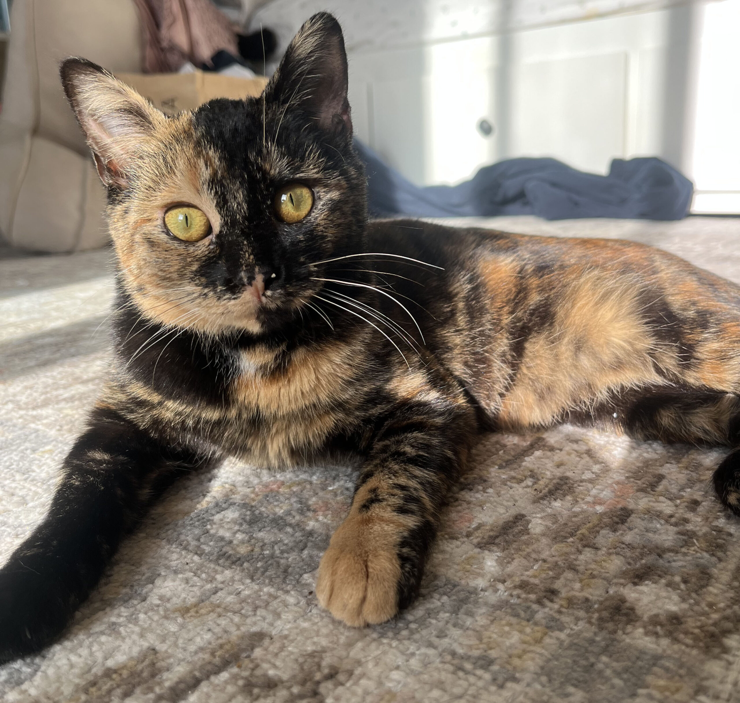 Meet Little Betty, the most friendly, fearless angel that I was lucky enough to foster. Betty has the warmest heart of any cat I have ever met, equally as playful as she is loving, she will chase toy mice around your home until the sun goes down, and then cozy up on your chest or by your toes for a long nap. She is not afraid to meet guests or even other cats, because Miss Betty sees everyone as a playmate and friend.