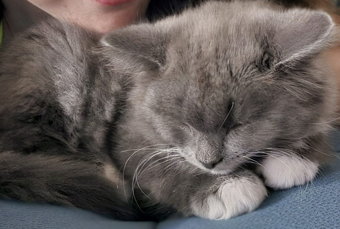 Bilbo is a big little boy with a huge heart. He loves being scooped into your arms, purring instantly like it’s exactly where he belongs. He’s warm, soft, and happiest when he can stretch out against your legs and quietly watch whatever you’re doing. He also has this endearing habit of tilting his head when you talk to him, as if he’s trying to understand every word. Gentle, affectionate, and people-focused, Bilbo is the kind of kitten who turns every moment into companionship. If you want a loving shadow at your side, Bilbo is your boy. (CCAR ID: S25-211)