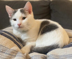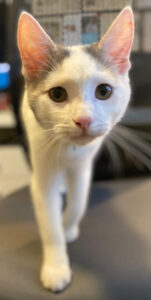 Buster is a striking white older kitten with the softest fur you’ll ever touch — and when he curls up for a nap, his markings form an adorable heart. True to his name, Buster has a big personality and a curious streak that keeps life entertaining. He’s still perfecting his manners (staying off the counters is a work in progress!), but his loving nature and playful energy more than make up for it. With a little patience and a lot of cuddles, Buster will grow into the perfect companion — a cat full of heart in every way. (CCAR ID: C25-167)