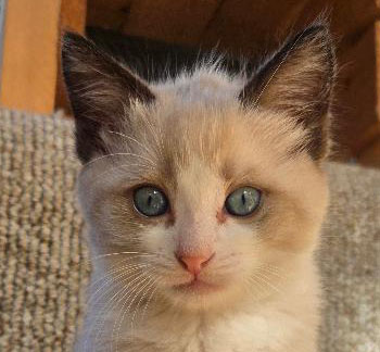 Cherry Blossom is the brave little explorer with luxuriously fluffy fur and dazzling blue eyes. She was the first to venture out and is always ready for a new adventure. Bold, curious, and beautiful, she’ll bring both fun and affection to her forever family. (CCAR ID: L25-203)