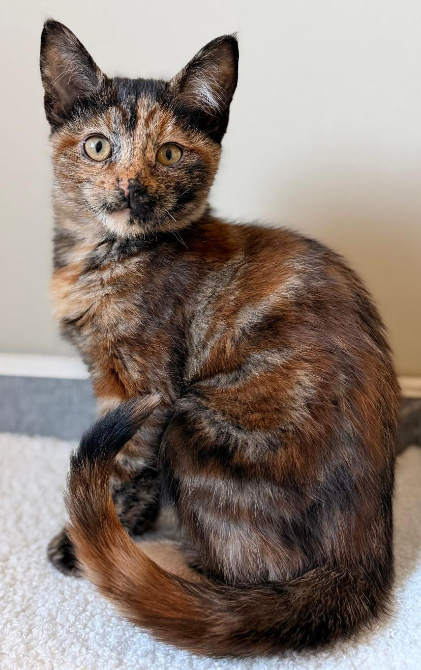 Cinder is a beautiful kitten and the most confident of her litter. Curious and full of classic kitten energy, she loves to run, jump, and play, always ready for her next adventure.
