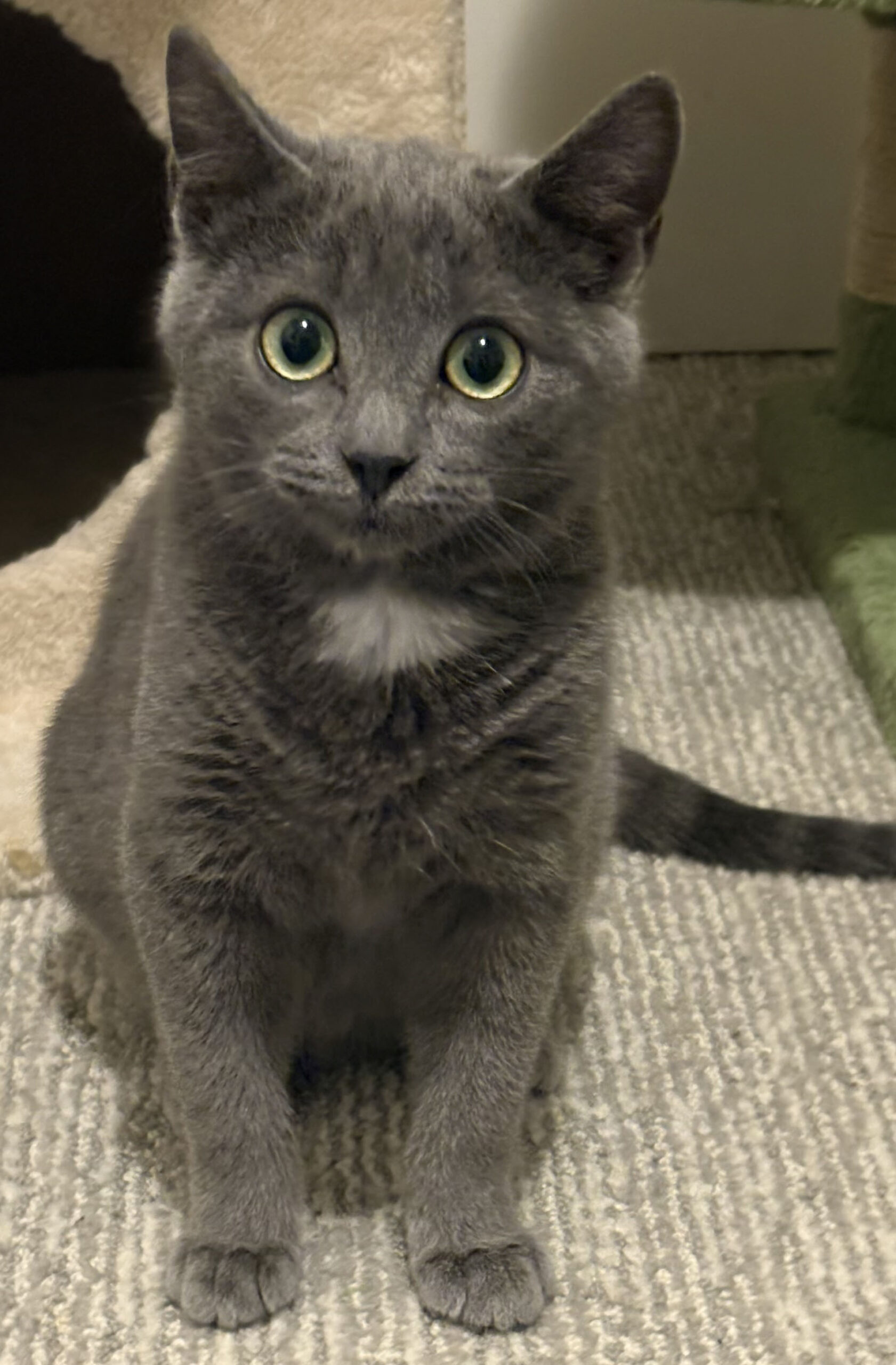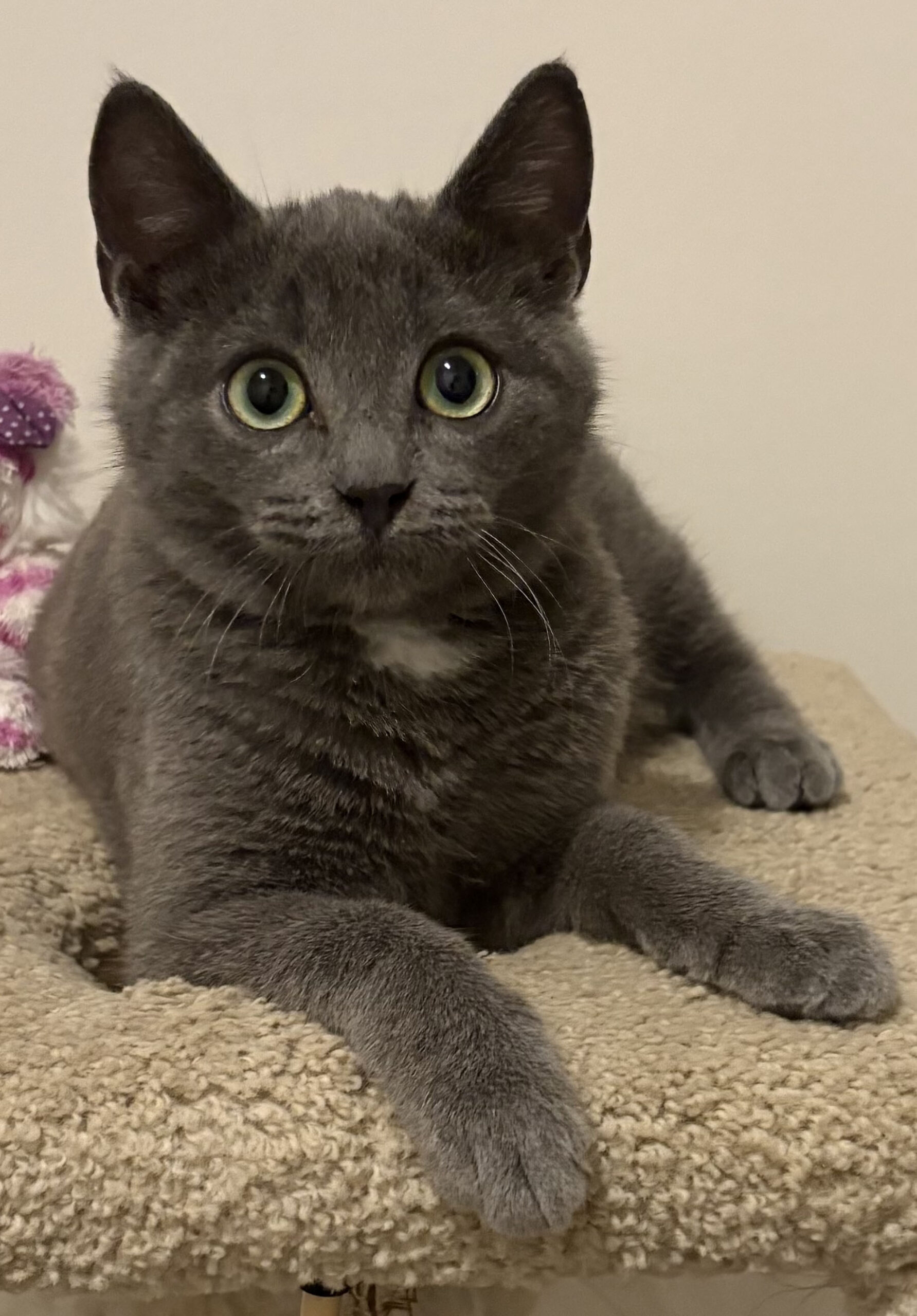 Comet – like his name suggests is the fastest kitten you’ve seen (or not seen – because he’s that fast!). Comet’s humans are going to need to be very patient and not clingy! Ew! He is not (yet) into snuggles. He is, however, into playing! Toys on strings, balls, cat trees, tunnels, ALL THE TOYS! Comet will need a quiet home without little hands (aka kids) and someone willing to give him the time and energy and love he deserves to show him the world is safe. Another cat buddy would be ideal to help him thrive (& to wrestle with – he is the current wrestling champion in his foster home). (CCAR ID: S25-227)