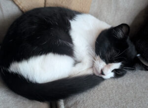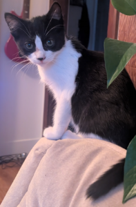 He’s currently living with his brother Toby and is definitely more assertive of the two; if Toby has food, toys, attention or peace & quiet, Dez will usually butt in and is always the instigator of playtime. That being said it’s always playful and Dez is the protector, playing big spoon when they cuddle (which is often)! Dez would be very happy in a home with another cat or kitten. (CCAR ID: C26-017)