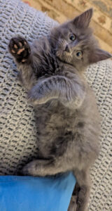 Gerome loves to play. His favourite toys are springs and hairbands. He loves to chase wand toys. He loves to wrestle with his siblings and is also very interested in his human companions. He will fall asleep in your arms. (CCAR ID: S25-200)