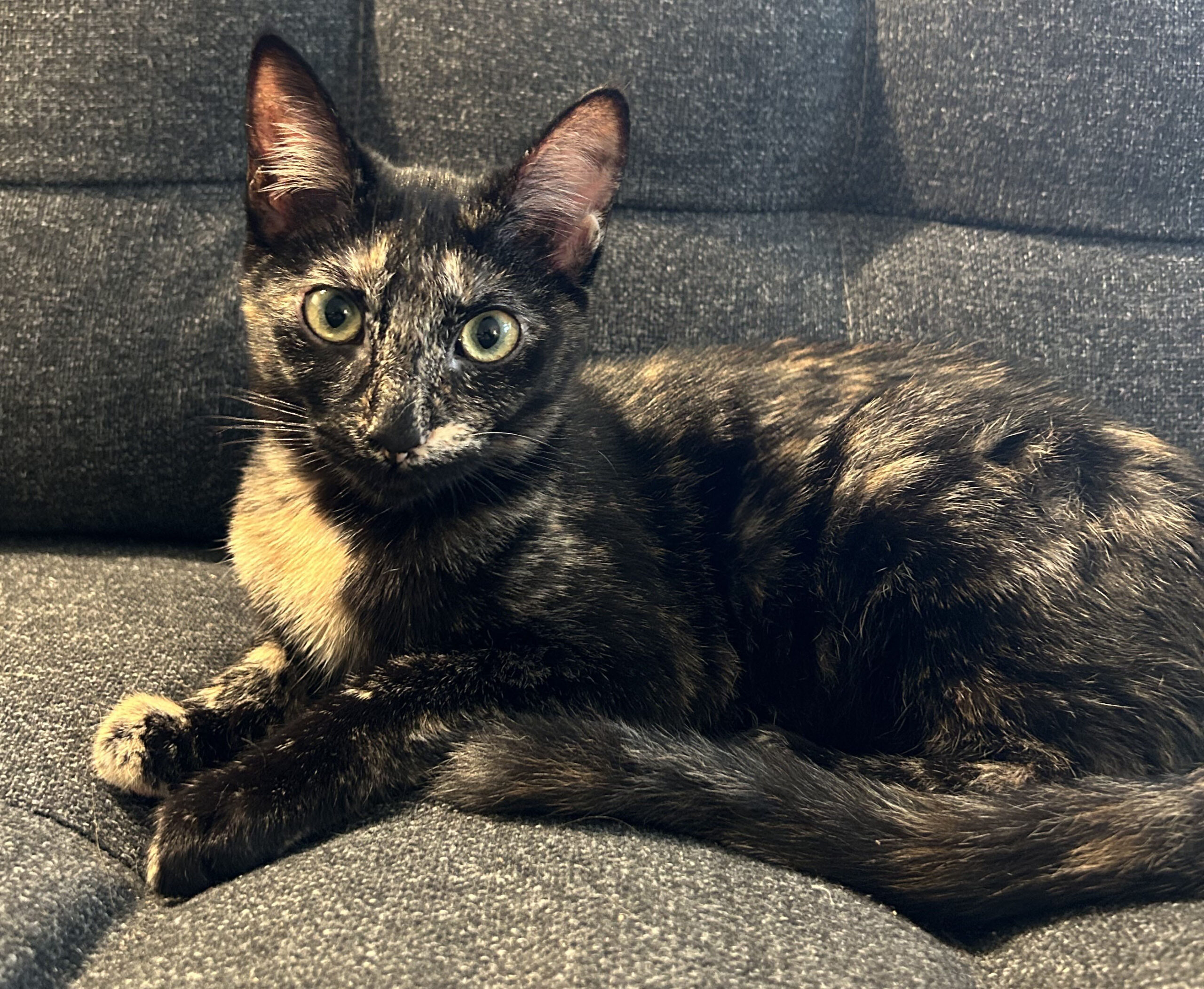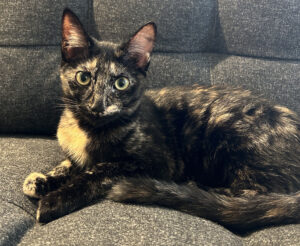 Hank is a little ball of energy and love. Despite her small size she has a very loud purr which she uses frequently. Hank loves to play with the other kittens but is also more than happy to make her own fun. Quite often she’ll seek out a cozy spot away from the other kittens to nap when she’s done playing. She has also done really well with the young kiddo at her foster home. (CCAR ID: C25-153)