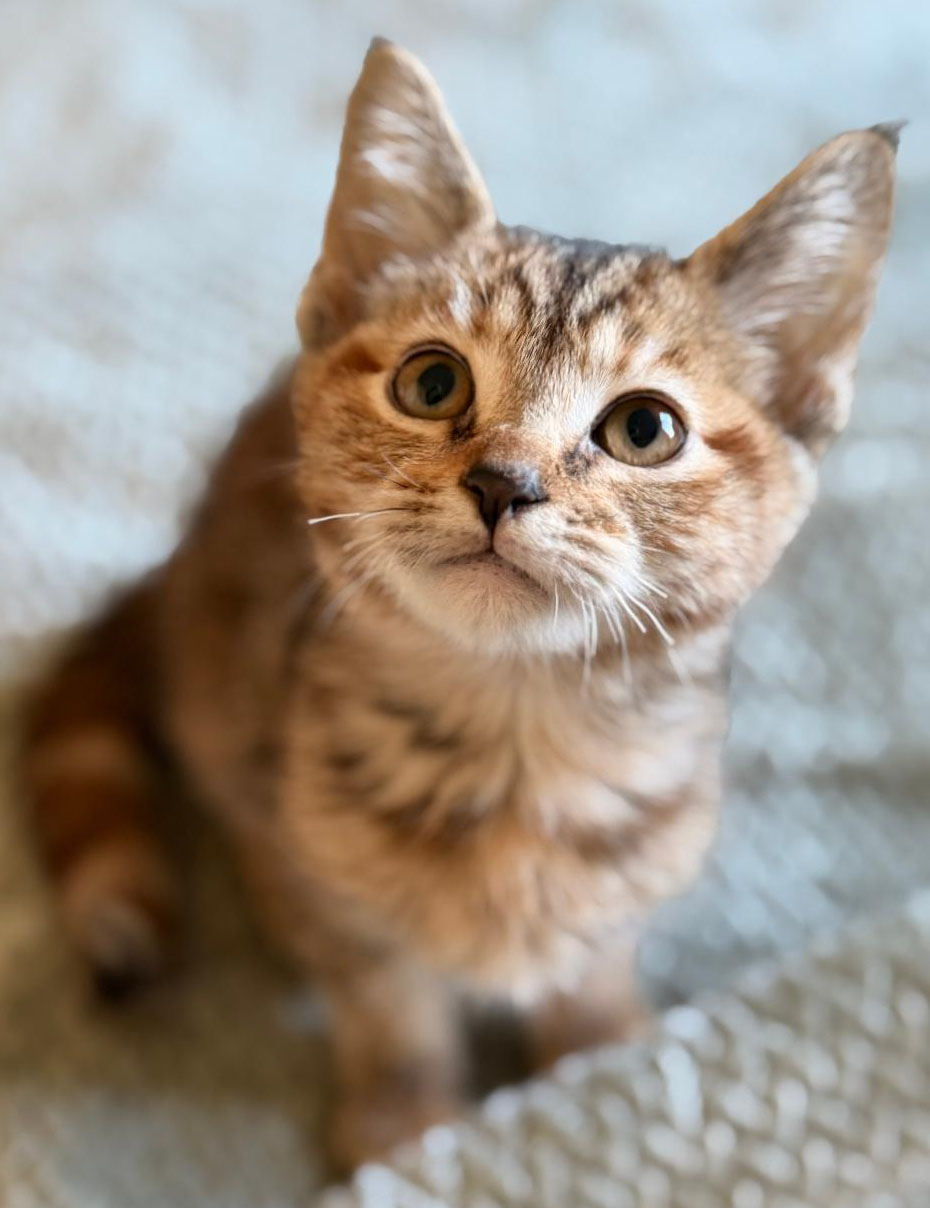 Hazel may be the smallest of her litter, but she more than makes up for it with her big personality! She’s the most vocal of the bunch and isn’t shy about sharing her thoughts—proof that good things truly come in small packages.