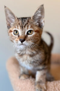 Hazel is a confident little kitten who thrives with feline companionship and will bring plenty of fun, affection, and tiny but mighty energy to her forever home. (CCAR ID: C26-009)