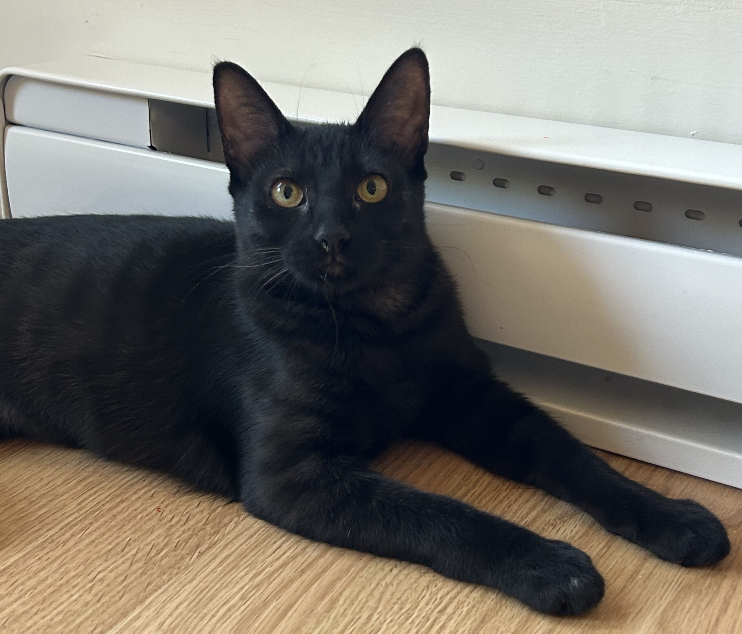 Licorice is a very confident kitten with SO much love to give. She is the first to explore a new space or toy and does not hesitate to hop in your lap when she wants some attention. She does not understand the concept of personal space and gives lots of kisses and head bumps. Licorice would be fine as an only pet or with another cat friend. She has also done really well with the young kiddo at her foster home. We can’t wait for this special girl to find a family of her own to love! (CCAR ID: C25-152)