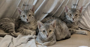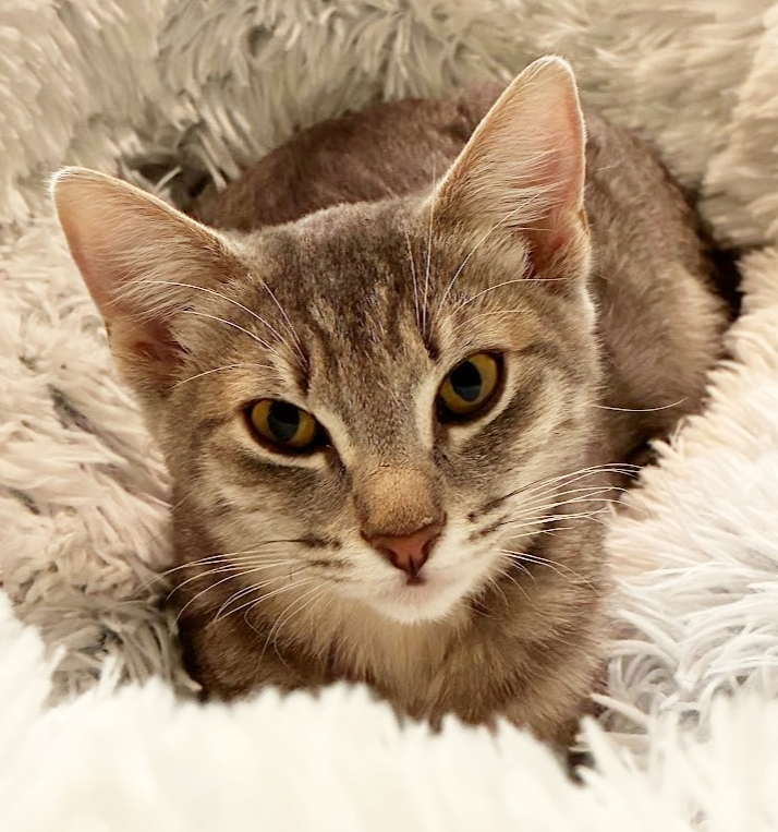 Part of the fierce K-Pop Demon Hunter sister trio… Mira is the boss of the house and she knows it. Confidence isn’t just a trait; it’s her uniform! She’ll tell you exactly what she wants (usually treats) and proves her dominance with Olympic-level parkour, jumping higher and farther than her sisters. When she lands, she transforms: activate the Motor-Purr! You’ll know it’s Mira because her purr sounds like a finely-tuned engine. Friendly, athletic, and 100% lap-certified (right-side up or upside down!), this bundle of love is ready to be your co-star. Don’t hit snooze on this adoption! (CCAR ID: PR25-163)