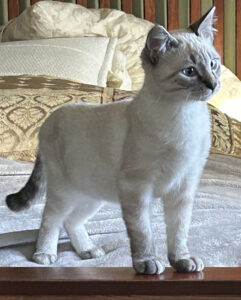 True to his name, Orion shines brightly! He is a delightful mix of playful, loving, and typically mischievous Siamese personality. He loves to zoom around, batting at toys and demanding attention with his charming chirps.
