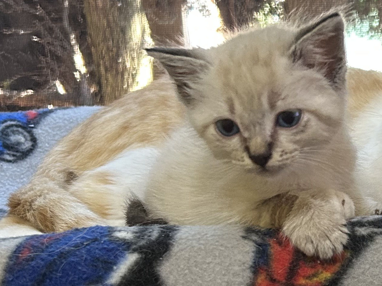This tiny Siamese boy started life against the odds. Found freezing and sick with pneumonia after being dumped on a beach at just four weeks old, Orion fought fiercely for his life. Thanks to dedicated care, he overcame major obstacles and has blossomed into a strong, healthy, and happy kitten.