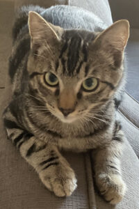Meet Pepper, a resilient little grey tabby with soulful eyes and a quiet strength. At such a young age, she has already overcome more than most—rescued without a mother, terrified and alone, then bravely battling lungworm through two hospital stays in an incubator. Now fully recovered, Pepper is slowly learning that people can be kind. She’s hand-shy and doesn’t like being picked up, but once she feels safe, she’ll come close for gentle pets and treats (which she adores). Pepper finds comfort in the company of other cats and would thrive in a calm home with feline friends and patient humans who understand that trust takes time. Because sudden noises and new faces still scare her, she’s best suited to a quiet household without young children. If you believe in second chances and the beauty of earning a shy kitten’s love, Pepper is waiting for someone just like you. (CCAR ID: L25-137)