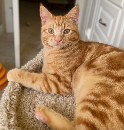 Beyond his handsome orange tabby stripes (which perfectly match a candy cane), Pippin is a genuinely clever, confident, and outgoing little guy. He approaches new situations with bravery, quickly learning the household routines and bringing good tidings wherever he goes. He’s looking for a home where he can be an engaged and loving member of the family this holiday season and for many happy new years to come.