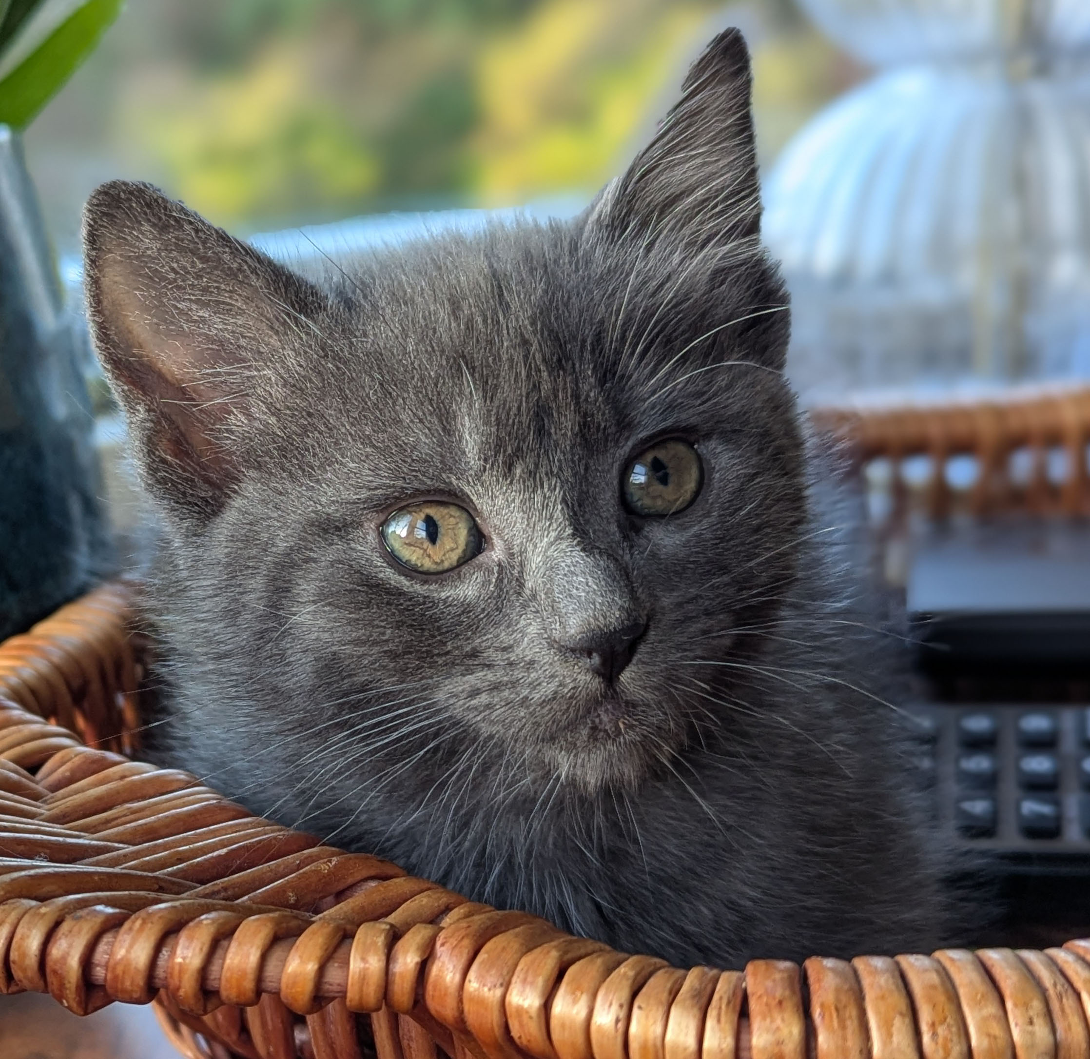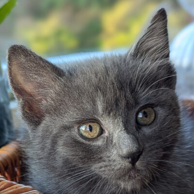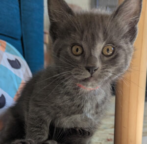 Poppy is the climber of the siblings. She loves to explore everything. She also loves chasing and wrestling. She enjoys her siblings but also spends a lot of time exploring on her own. She is also happy to sleep next to her human companions and get some pets. (CCAR ID: S25-202)