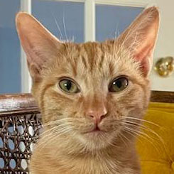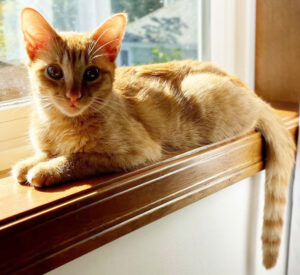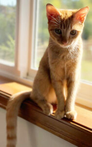 Saka (Sokka) is a delightful member of the Airbender litter. This charming little fellow will steal your heart with his oversized green-gold eyes and diminutive chin. Saka loves cuddles and will chirp at you for attention, followed by little head butts into your incoming palm. He enjoys lap time, pets and doesn’t appear mind being held for snuggles. He is gaining confidence but is still startled by unsolicited attention. As such, an adult-only home might be best. Despite being cautious, he seeks out your affection and returns it in spades. Playful, curious and sweet, he has the makings of a wonderful companion. (CCAR ID: C25-171)