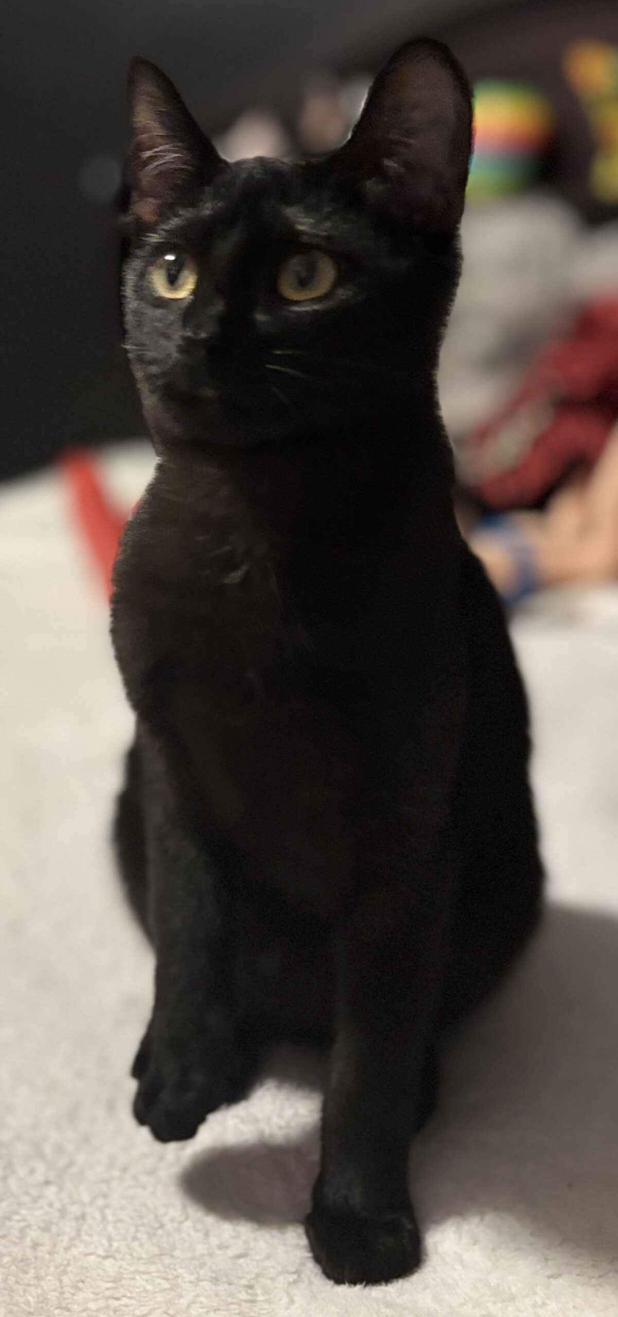 Introducing Suzy-Q – the pint sized house panther with the most striking eyes! This cutie is sure to steal your heart not just with her good looks but her utterly gentle and loving personality. Suzy-Q is VERY shy at first but once she knows you, she is usually purring and making biscuits before even getting a pet.