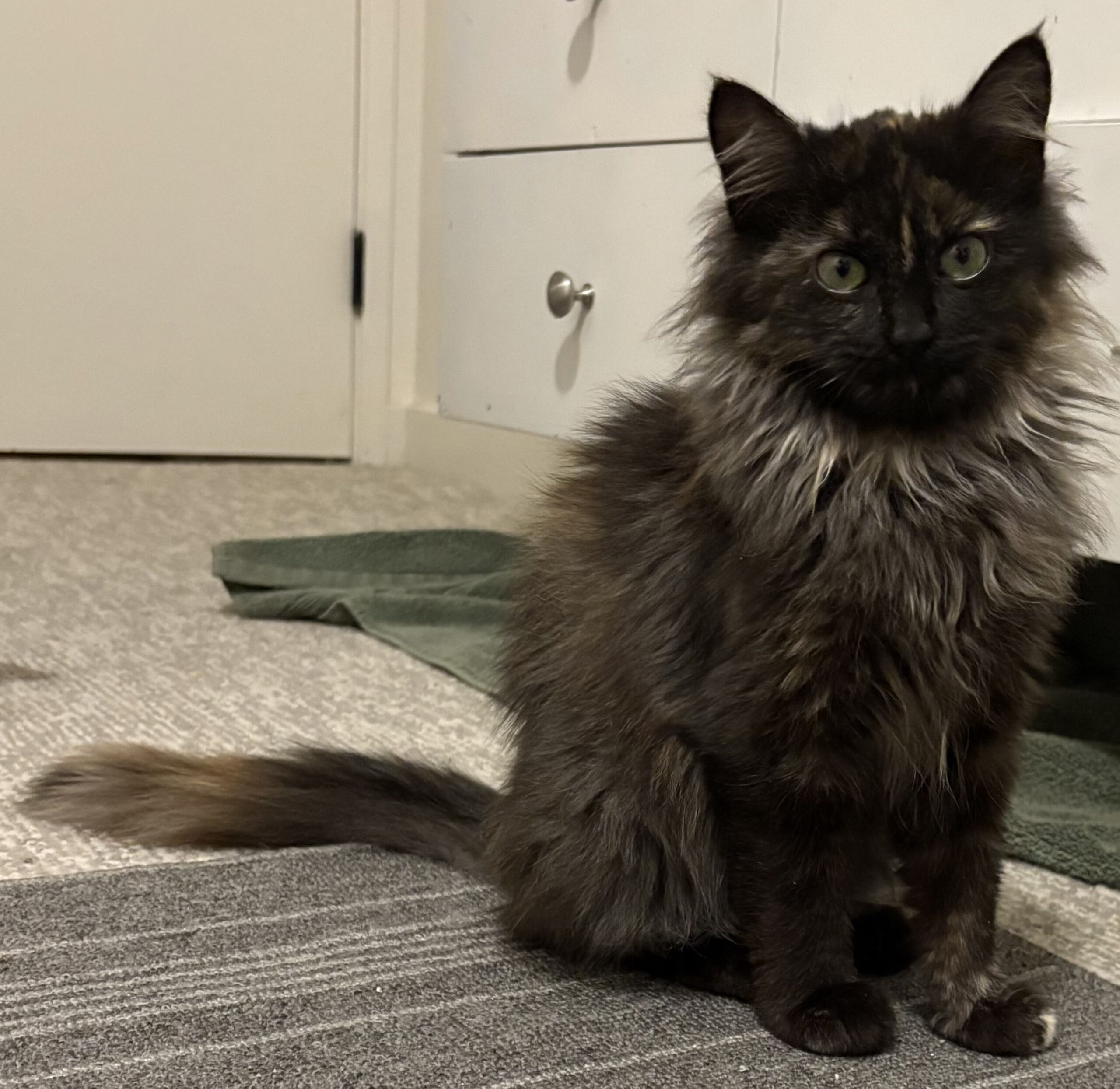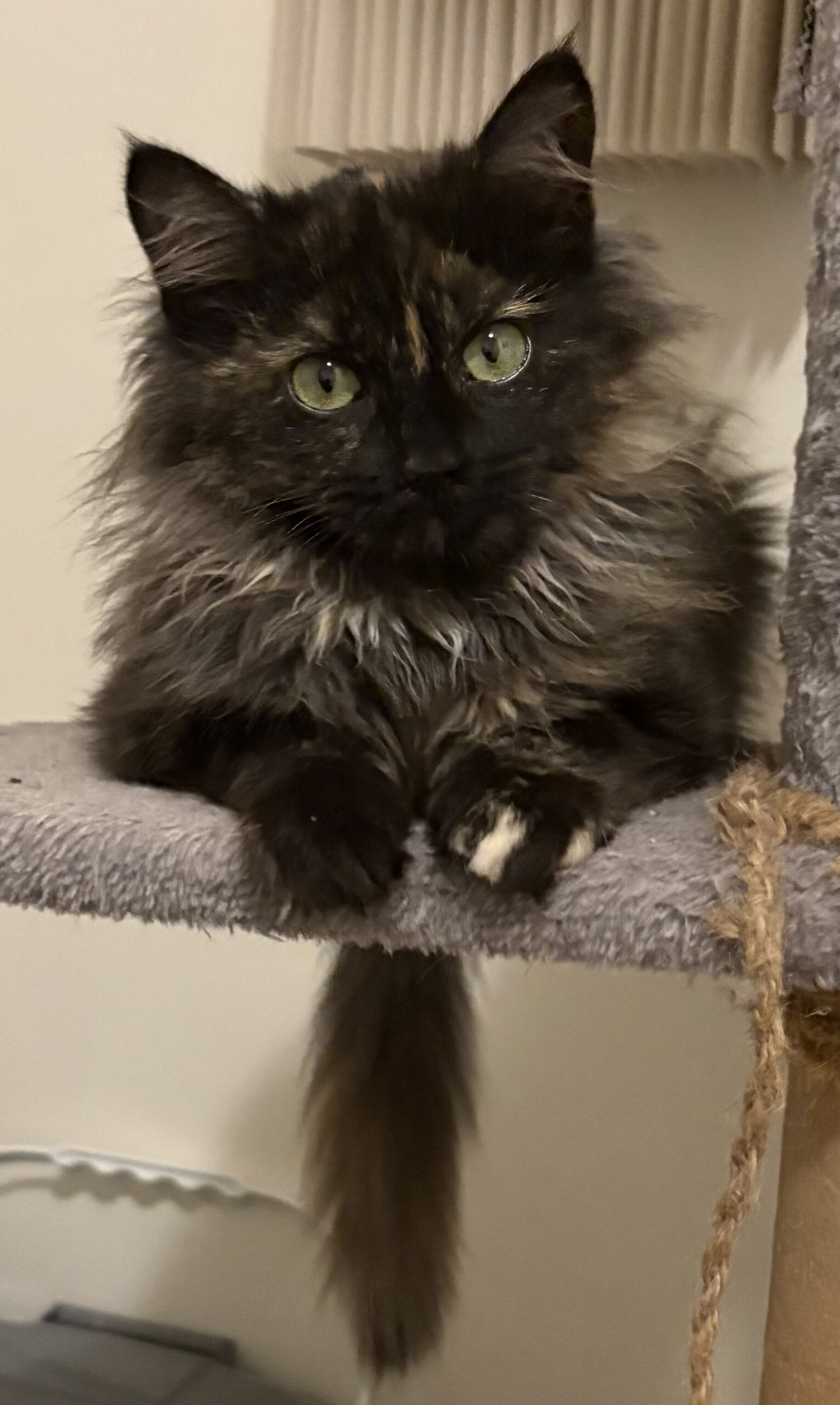 Vixen is a beautiful long hair tortie but she hasn’t let her gorgeous appearance go to her head. She is still getting used to life indoors and will need a calm, quiet home and human (or humans) to help build her confidence. Vixen would love another cat to help show her that humans are safe and only here to provide love and to serve her. She will need someone with lots of patience to help bring her out of her (tortoise) shell. Vixen is a bit of a goofball once she gets playing! (CCAR ID: S25-224)